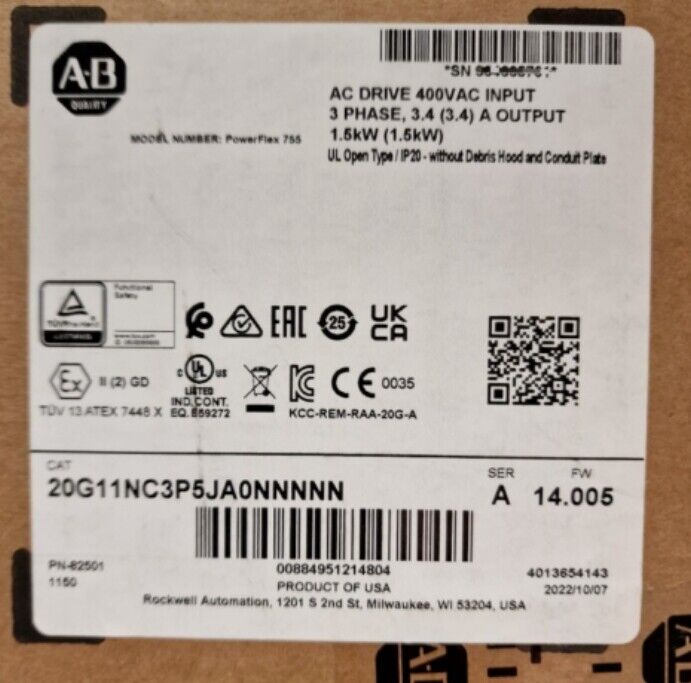 AB Allen Bradley 20G11ND8P0AA0NNNNN PowerFlex Air Cooled 755 AC Drive Sealed