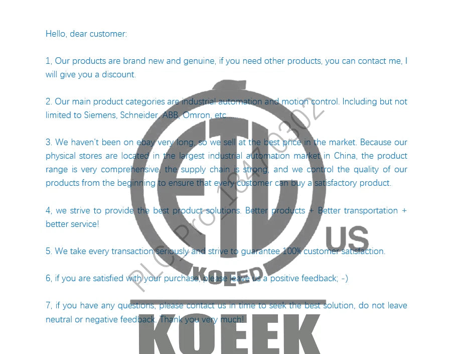 At koeed.com, we are professionals in the field of industrial electronics. We specialize in the sales of industrial electronic PLCs, HMIs, Motors, Drives, Converters, and more.