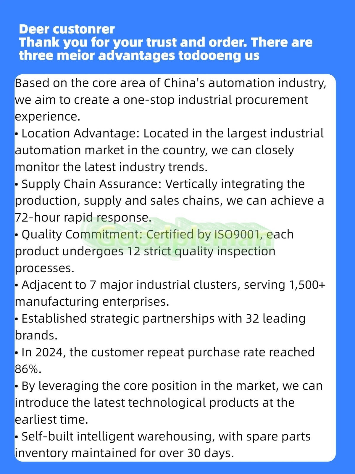 • Customer Service: We pride ourselves on our exceptional customer service. We're here to help throughout the entire process, from product selection to after-sales support.